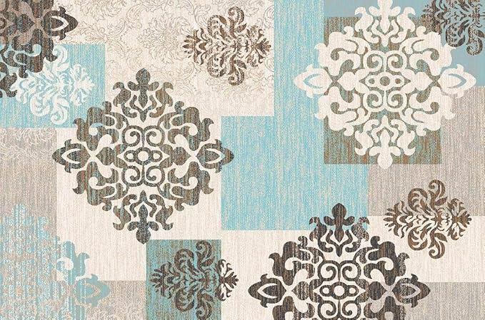 BuyElegant® Anti-Rutsch-Teppiche aus 100% Polyester und Latex, Umweltfreundliche Rückseite, waschbar, Polyester, Brown Blocks