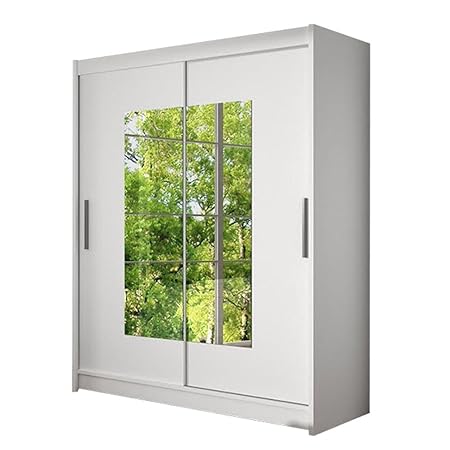 Laminatplatte resistent gegenüber Kratzern Spiegel aus Schrank Front Ausziehbare Kleiderstange erleichtert den Zugang zu aufgehängten Dingen Metall Griffe Enthält 3 Metall Kleiderhaken für Kleidung