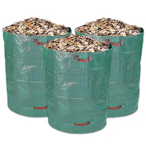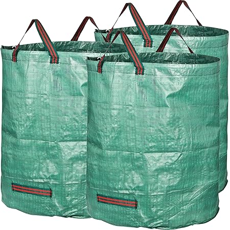 Speedsporting Gartensack, 3er 272L Gartenabfallsack aus robustem Wasserdichtes Polypropylen-Gewebe - Selbststehend und Faltba