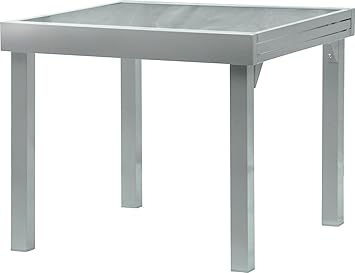 DEGAMO Balkontisch Amalfi aus Aluminium und Glas 65x65cm, ausziehbar auf 65x130cm
