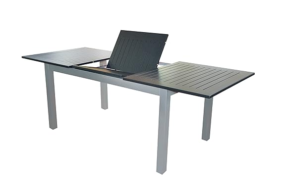 der Tisch ist von 160 auf 220 cm verlängerbar das Gestell besteht aus eloxiertem Aluminium (pulverbeschichtet) stabile Durel TOP-Tischplatte absolut wetterfest und UV-beständig Alu-Tischbeine mit Höhenausgleich