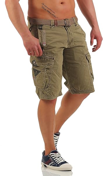 Geographical Norway Herren Cargo Shorts Palium kurze Sommer Hose inkl. Gürtel, Seitentaschen