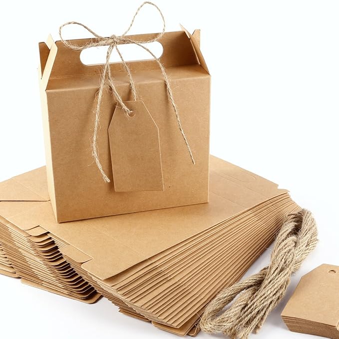 Haofy 50 Stück Kraftpapier Geschenkschachtel Set Retro Stil Geschenkverpackung Kraftpapier Box mit Geschenkanhänger Hanfseil