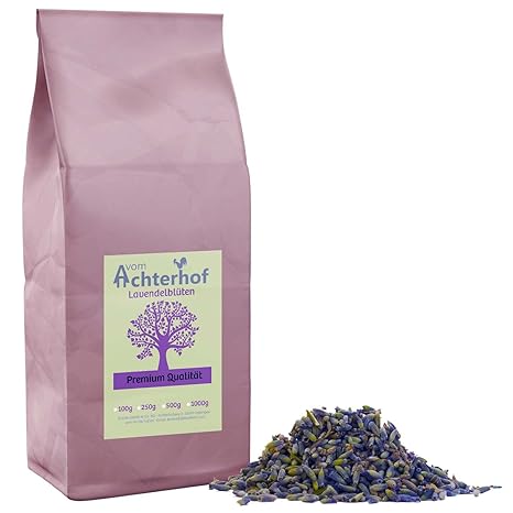 Lavendelblüten getrocknet : In der deutschen Küche sind die feinen Lavendelblüten bisher noch eine kleine Rarität, nicht so in Frankreich dort sind die essbaren Blüten eines der beliebtesten Gewürze und dürfen in keiner guten herbs de provence Gewürzmischung fehlen Aber nicht nur als Gewürz eignet sich unser Lavendel. Von der Lavendelseife dem Lavendelsäckchen über den Badezusatz bis hin zur Deko sind den Einsatzmöglichkeiten kaum Grenzen gesetzt.Ganz schön vielseitig, die kleinen blauen Blüten Lavendelblüten für Tee: Viele Menschen schwören heute auf Lavendeltee. Die Zubereitung ist denkbar einfach.Die Lavendelblüten mit dem kochenden Wasser übergießen 5 bis 10 Minuten zugedeckt ziehen lassen und dann abseihen. Fertig ist der Lavendelblütentee Sie erhalten ein laborgeprüftes Naturprodukt welches mit Liebe und Sorgfalt von Hand abgefüllt wird Spitzenqualität naürlich vom-Achterhof - Herkunft: Frankreich › Weitere Produktdetails