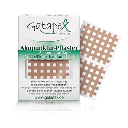 Hautverträgliche und atmungsaktive, gitterförmige Akupunkturpflaster aus Polyester und Polyurethan in hautfarbe. Die Packung enthält 160 Crosstape Pflaster, wobei jedes Pflaster 2,1 x 2,7 cm groß ist Der hochwertige, latexfreie und atmungsaktive Hightech-Acrylat-Klebers wird durch Druck aktiviert, nicht durch Reibung und Wärme. Dadurch hält das Pflaster auch an unebenen Akupunkturpunkten Das Akupunkturpflaster wird nicht als störend empfunden und kann auch von Allergikern ohne Schmerzen bis zu einer Woche auf den Triggerpunkten getragen werden Duschen, baden und schwimmen ist ebenso problemlos möglich wie sportliche Aktivitäten, da das Cross-Tape zwar schweißdurchlässig ist, der Kleber sich aber nicht bei Wasserkontakt löst Aufgrund der jahrelangen Erfahrung von Gatapex im Bereich Akupunktur-Pflaster und Kinesiologie-Tape überzeugen die Produkte mit höchster Qualität zur Verbesserung des Wohlbefindens