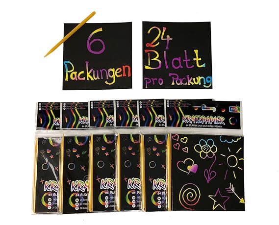 tolles kleines Mitgebsel für Kindergeburtstage etc. 6 Packungen (je 24 Blatt) inkl. Kratzstab Größe pro Blatt 8,5 x 8,5 cm › Weitere Produktdetails