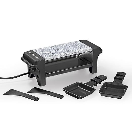 Raclette für 12 Personen - Fondue für 8 Personen Stufenlose Temperatureinstellung Antihaftbeschichtete Grillfläche Mit zusätzlicher runder Steinplatte Antihaftbeschichtete Raclettepfännchen mit wärmeisoliertem Griff