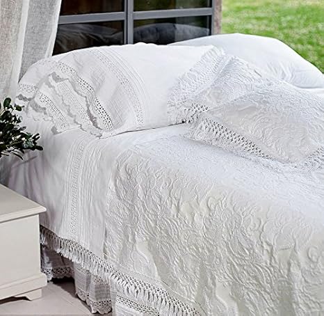 Tagesdecke ' schäbige Spitze ' von Ecru Blanc Mariclo, ideal für einen schäbigen schicken Dekor und romantisch in einem gemütlichen Weinlesegefühl.