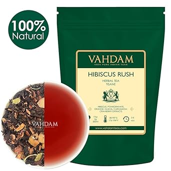 Rote Beete, Hibikusblüten und die Beeren geben dem Tee seine dunkelrote Farbe.