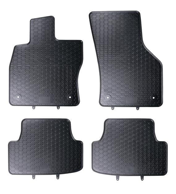 passgenau für Audi A3 3-türer ab 6/2012 (Typ 8V);A3 Sportback (5-türer) ab 2/2013; VW Golf 7 ab 2012 4-teiliger Satz (2 Matten für vorn, 2 für hinten) incl. runder Befestigungs-Clips in den vorderen Matten erhöhter Rand (ca. 1 cm hoch) schickes Design