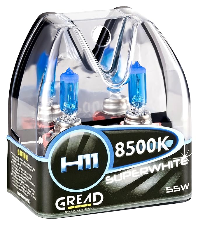 2x H11 Halogen Lampen in Xenon Optik von Gread Lights | Super White | 8500k 55W | E-Prüfzeichen | 100% Passgenauigkeit & lang
