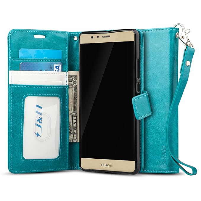 J & D Huawei P9 Lite Hülle, [Handytasche mit Standfuß] [Slim Fit] Robust Stoßfest Aufklappbar Tasche Hülle für Huawei P9 Lite