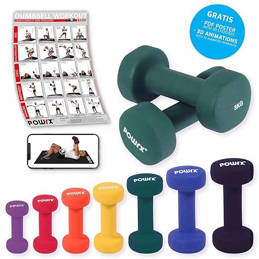 POWRX Vinyl Hanteln Paar Ideal für Gymnastik Aerobic Pilates 0,5 kg – 10 kg I Kurzhantel Set in versch. Farben