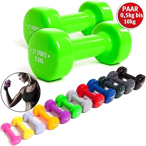 C.P. Sports Gymnastikhanteln 0,5-0,75-1,0-1,5-2,0-2,5-3,0-4,0-5,0-6,0-8,0-10 kg - Paare Kurzhantel, Vinyl Hanteln, Faust Hant