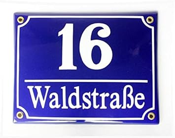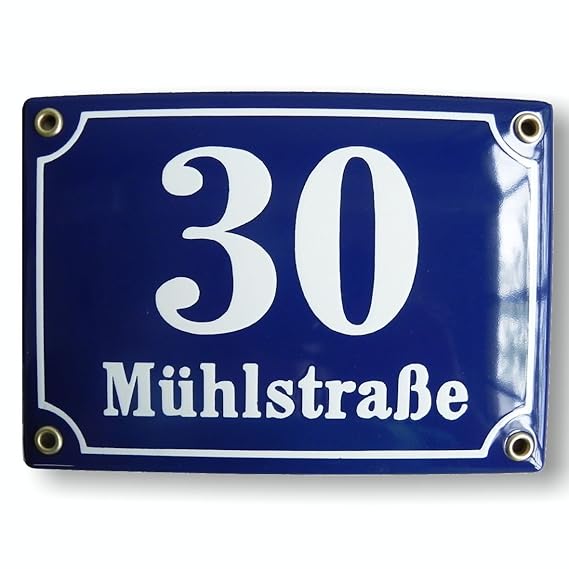 Hausnummer Hausnummernschild Emaille 25x30 cm mit Wunschstraßennamen und Nummer
