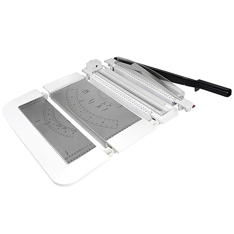 Größe: 32.5 x 25 x 3cm/ 12.7 x 9.8 x 1.2Zoll (L x B x H) Grifflänge: 47cm/ 18.3Zoll Länge der Klemme: 20.5cm/ 8.0Zoll Größe Indikator inklusive A2, A3, B4, A4, B5, A5, B6, B7, perfekt zum präzisen Schneiden von Dokumenten, Ausdrucken, Papier, Karten, laminiertem Papier oder Fotos Sehr scharf, schneidet entsprechend einfach und sauber. Zusätzliche magnetische Positionierhilfe. Hebelarm lässt sich festklemmen, dadurch sehr kompakt Hebelmesser aus hochwertigem Stahl und Griff der Guillotine sorgen für ein optimales Schnittergebnis. Nützliches Raster mit Formatlinien auf dem Schneidebrett für passgenaue Zuschnitte Schnittleistung: ca. 12 Blätter, ideale Option sowohl für den professionellen Einsatz, als auch den privaten Gebrauch, z.B, Schul- und Bürobedarf › Weitere Produktdetails