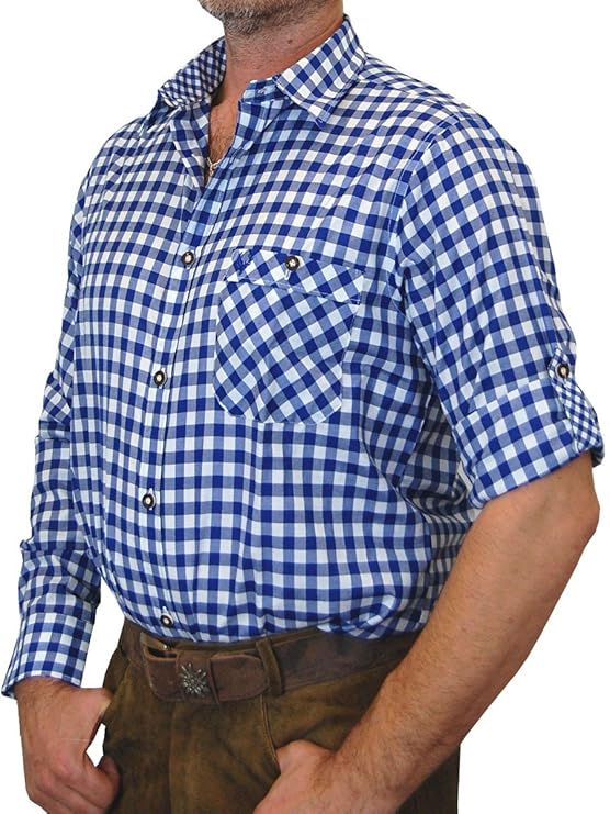 PREMIUM-QUALITY Trachtenhemd Karohemd Herren – Bayrisches kariertes Wiesn Hemd Tracht für Männer - Tracht-enmode für Oktoberfest – Freizeithemd kariert Trachten-Hemden Langarm Kurzarm Krempelarm in bestem Tragekomfort FÜR MÄNNER, DIE DAS BESONDERE SCHÄTZEN! 100% Reine Baumwolle Modellnummer: Hemd-SAMBL.0 Ökö-Tex-Standard 100 - schadstoffgeprüft Überzeugen Sie sich selbst von unseren schönen Hemden in bester Qualität zum fairen Preis-Leistungs-Verhältnis. Bestellen Sie gleich jetzt Ihr neues Lieblings-Hemd von MOSCHEN-BAYERN. Das Hemd hat eine legere, gerade Schnittform mit reichlich Weite - wir empfehlen 1 Größe kleiner zu bestellen! Edelweiß-Stickerei an Knopfleiste - Langarm - Krempelarm (auch als Kurzarm tragbar) - das passende Halstuch finden Sie auch in unserem Moschen-Bayern-Amazon-Programm.