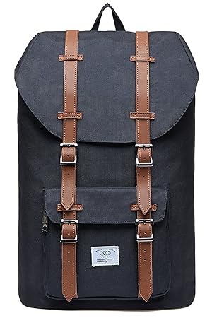 MATERIAL-Canvas, der Rucksack sieht stylisch und schön aus, die gepolsterten Schultergurten und Rückenteil sowie atmungsaktiven Gewebe ist der Rucksack über einen längeren Zeitraum angenehm zu tragen. Laden USB Port : Der Rucksack ist über einen USB Anschluss an der Außenseite verfügt. Hierzu ist im Inneren auch das dazugehörige Kabel vorhanden, welches z.B mit einer Powerbank verbunden werden kann. GRÖßE-28.5cm (L) x49cm (H) x18cm (W) / 11 '(L) X19.2' (H) X7 '(W), GEWICHT-980g KAPAZITÄT-25~30L, es sind 1*2cm dicker Laptop, 1*4cm breite Din A4 Ordner, 2*2cm dickes Bücher, eine Kamera, ohne Laptop kann auch einige Kleidungen zu tragen, perfekt für Freizeit, Reise, Wandern, Schule, Campus. Es gibt auch viele Tasche, die mehr platz für kleine dinge wie handys, schlüssel Kabel bieten. STRUKTUR -Über Klappen mit Riemen Design, Druckknopfverschluss, 1*Maincompartment mit gepolstertem Laptopfach, 1*Fronttasche mit Reißverschluss, 2 * Seitliche Taschen für Wasserflasche, 3* Innere kleine Tasche für Handy, Charger, Kabel.