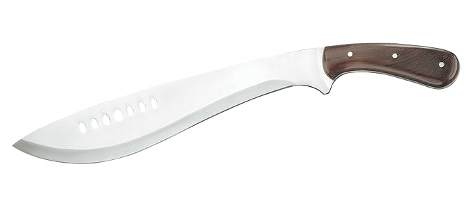 Die Form und der weit nach vorne gelegte Schwerpunkt sind die typischen Merkmale einer Bolo-Machete. Ein stabiler Holzgriff gibt festen Halt. Die Klinge aus rostfreiem Hochleistungsstahl ist vielseitig einsetzbar. In der mitgelieferten Lederscheide kann die Machete aus dem Hause Herbertz problemlos aufbewahrt und transportiert werden. Verkauf an Personen ab 18 Jahren.-Grifflänge: 13.5 cm-Klingenlänge: 36.0 cm-Gesamtlänge: 49.5 cm