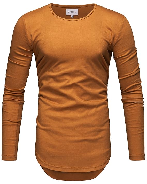 Crone Yuma Slim Fit Oversize Herren Rundhals Longsleeve Basic Langarm T-Shirt in vielen Farben Vegan
