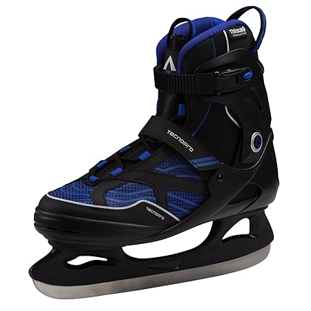 TÜV / GS geprüft - Kältebeständigkeit bis - 20° Grad Größe leicht per Knopfdruck verstellbar / moderne Optik (Farbe: schwarz/blau/weiß) Schnellschnürsystem mit Powerstrap / Push Lock Schnalle für sicheren Halt Gehärtete Kufe aus rostfreien Stahl (52 HRC) / Kufenträger aus stoßfestem PP-Material max. Benutzergewicht bis 60kg / inkl. Kufenschutz und Tragetasche