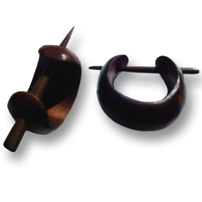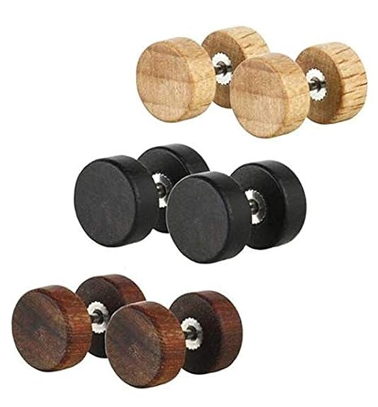 Vintage Ohrstecker-Set, ähneln Tunnel-Plugs, Unisex, Holz und Edelstahl.