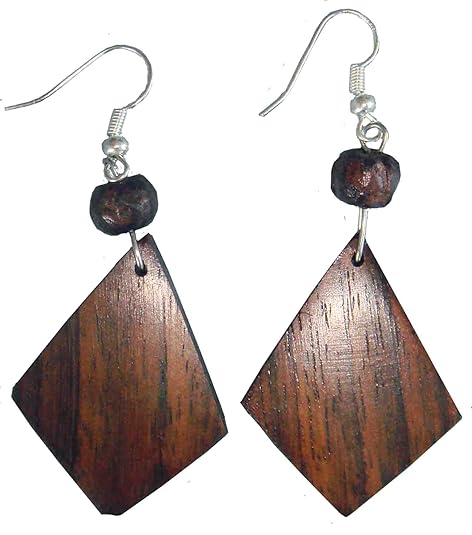 Ausgefallener Ohrschmuck der durch seine Natürlichkeit zur Geltung kommt. Material: Holz/Edelstahl Länge: mit Haken und Öse ca. 5 cm Breite: ca. 25 mm Farbauswahl: schwarz, grau, braun, grün und rot