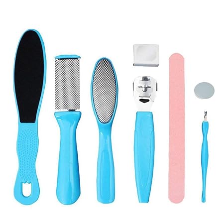 8 IN 1 PEDICURE TOOLS: Kommt mit 8 Pediküre Pflege-Tools. Kaufen Sie einen Satz, um 5 professionelle Pediküre-Werkzeuge zu bekommen. Die Pediküre-Werkzeuge erfüllen Ihre Bedürfnisse perfekt. BUOCEANS Pediküre Rasp nimmt importierten chirurgischen Edelstahl, wodurch es möglich ist, langlebig, funktional und langlebig zu sein. PROFESSIONAL UND HOME USE: Ein Kallusrasierer, eine Fußdatei, ein Nagelhauttrimmer, ein Zehennagelscherer eignen sich sowohl für den häuslichen als auch für den professionellen Einsatz. 5 hochwertige Blätter für den Austausch. Es entfernt trockene rissige Haut von den Füßen leicht und lässt Sie erstaunlich jugendliche Füße Haut. Eine tolle Pediküre und du verdienst es. EASY-TO-USE PEDICURE KIT: Der Ergonomische Kunststoffgriff passt gut zu den menschlichen Händen und ermöglicht es Ihnen, harte Haut, Schwielen und geknackte Haut zu entfernen, um weiche, fancy Füße mit wenig Aufwand zu bekommen. Die Pediküre Spa-Set ist sehr komfortabel und einfach zu halten und zu verwenden. Ausgezeichnete Pediküre-Werkzeuge für Ihre Füße Haut gesetzt. FÜR TROCKEN UND NASSE FÜSSE: Perfekt für trockene und nasse Füße Haut, kommt gute Ergebnisse. Sprich durch Tschüss zu Hühneraugen, Schwielen, Nagelhaut, harte Haut und all die Füße Probleme. Sag hallo zu gesunden und schön aussehenden Füßen. 100% ZUFRIEDENHEITSGARANTIE: Diese spezialisierten Kallus-Remover-Werkzeuge erlauben es Ihnen, die Nägel an Ihren Händen oder Füßen glatt zu machen und zu verschönern. Das System umfasst 8 verschiedene WerkzeugeDoppelseitige Sandpapier-Datei, Fuß Rasp (Quadrat), Fuß Rasp (Ellipse), kräftiges Remover Messer, polierter Streifen, Hard Skin Remover, Silikon-Pad, 5 Stück Klingen.