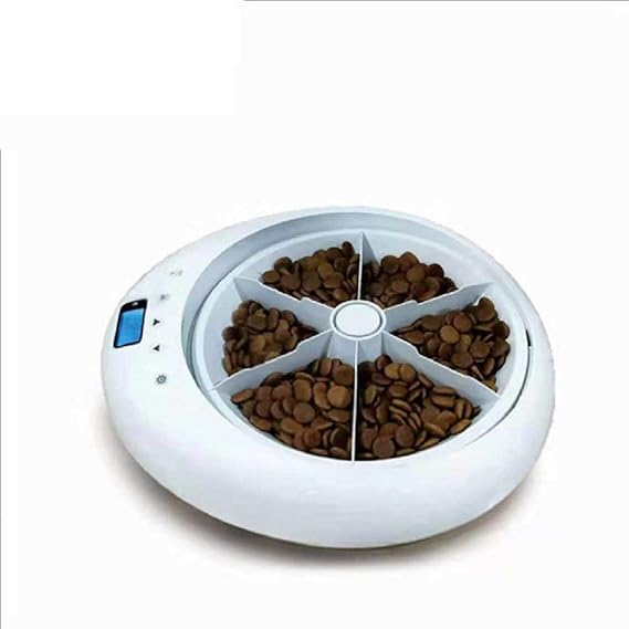 ? Zuerst, um eine AA-Batterie (nicht im Lieferumfang enthalten) zu installieren, drehen Sie dann den Twist gegen den Uhrzeigersinn, um die Zeit einzustellen, vorbehaltlich der folgenden drei weißen Dreieckspfeile ? 48-Stunden-Timer: Mit dem Timer können Sie innerhalb von 48 Stunden 1 Mahlzeit einstellen. Hinweis: Jede Skala des Timers repräsentiert eine Stunde, daher ist die Minute nicht präzise und die Zeitlücke zwischen den einzelnen Zuführungen beträgt etwa 10-15 Minuten. Sie müssen überlegen, ob Sie Ihre Hunde und Katzen gleichzeitig füttern möchten. ? Verwendbar für Trockenfutter und Dosenfutter. Hinweis: Wenn das Wetter heiß ist, ist es nicht geeignet für Dosenfutter. 1 Mahlzeit von 185 g ? EIN / AUS: Sie müssen den Akku nicht entfernen, wenn der Tiertransport nicht verwendet wird. Achtung: Wenn Sie eine Fütterungszeit einstellen, müssen Sie gleichzeitig 'ON' öffnen. ? Leicht zu reinigen: Die kleine Innenschale wird entfernt und gereinigt, um Ihrem Haustier eine saubere Umgebung zu geben.