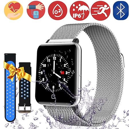 ?Multifunktionaler Smart Uhr?1,3-Zoll-TFT-High-Definition-Farbbildschirm, Uhr-Benutzeroberfläche, Herzfrequenz, Schlafmonitor, Auto-Pedometer, Weckalarm, Multi-Sport-Modus, Benachrichtigungen, Sitzende Erinnerung, Kamerafernbedienung, Anti-Lost-Alarm, Eingehender Anruf und SMS-Erinnerung, Social Software, Erinnerungsfunktion, Musiksteuerung usw. Ein sehr empfindliches Geschenk für Männer, Frauen, Jugendliche, Kids.etc. Ein sehr zartes Geschenk für Herren Weman Ehemann Frau oder Mädchen & Freund. ?IP67 wasserdichte Sportuhr? IP67 wasserdichter Standard, keine Notwendigkeit, ihn zu entfernen, wenn Sie Regen, Schweiß, Hände waschen oder den Alltag waschen Laufen, Radfahren, Fußball, Schwimmen, Tischtennis, Badminton, Klettern, Aufzeichnen Ihrer täglichen Sportdaten. Perfekt für Sport- und Outdoor-Liebhaber. ?Kompatibilität? Bluetooth-Version: BLE 4.0. Unterstützung für Android-System 4.4 oder höher (Huawei, LG, Google, One Plus, Samsung, Sony) ; für iOS-Version 9.0 oder höher (Passt für iPhone 6 / 6Splus, iPhone 7/7 plus, iPhone8 iPhone X / XR / XS / Xs Max); ?Gesundheitsmonitor? Übernehmen Sie den neuesten HR-Sensor für genaue und effektive Herzfrequenzmessung, Blutdruckmessung, Blutdruckmessung. Diese Uhr erkennt Ihren Schlaf automatisch nachts und analysiert Ihre Schlafqualität mit Tiefschlaf, leichtem Schlaf und Wachzeit. Die lautlosen Vibrationsalarme können Sie wecken, ohne andere zu stören. und erinnert Sie, zu trinken. ?Stainless Steel Smartwatch?Mit austauschbarem Edelstahl Riemen, schlank, bequem und einfach zu tragen.