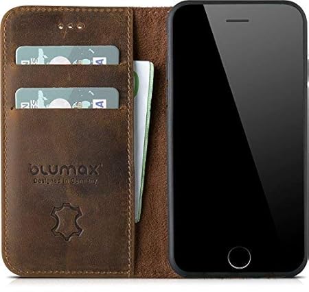 Blumax iPhone 8 iPhone 7 sogar iPhone 6s & 6 Flipcase Ledertasche Echtleder Case Handyhülle ohne Magnet Farbe Classic-Braun Bookstyle Vintage