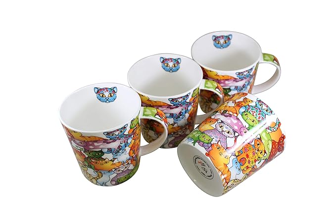 Set bestehend aus 4 Tassen Katzenjunge vor ländlichem idyllischem Hintergrund diesen Augen kann man nicht wiederstehen Keramik hervorragend abgestimmte Farbgebung