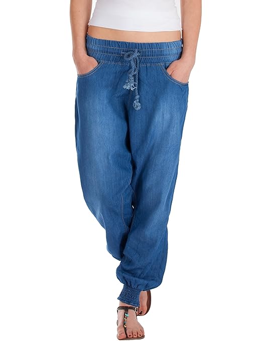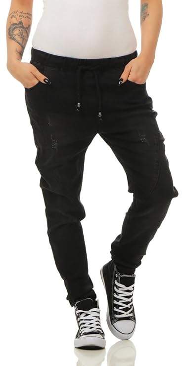 OSAB-Fashion 10668 LEXXURY Damen Jeans Hose Boyfriend Haremsjeans Gummibund Röhrenjeans Joggpants