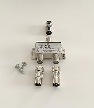 Inklusive Adapter F-Stecker auf Koax Stecker. Somit universell einsetzbar. Bei Verwendung als Splitter bei SAT TV ( DVB-S DVB-S2 ) können beide Teilnehmer nur dasselbe Programm sehen. Bei DVB-T und Kabelfernsehen können mit diesem Splitter beide Parteien verschiedene Programme sehen