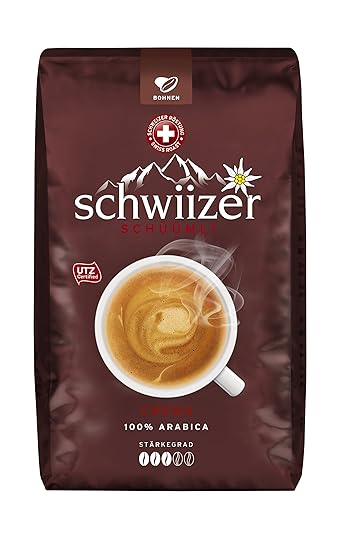 IHR SCHWIIZER SCHU?U?MLI CREMA: Erlese Arabicabohnen-Mischung, kreiert für Vollautomaten, Kolbenmaschinen sowie klassischen Filteraufguss. Stärke 3 Geschmack: Hochwertige Arabicabohnen mit würzig-beerigem Aroma Nachhaltigkeit: UTZ-zertifizierter Kaffee Verpackung: 1000g ganze Bohnen für Ihren Espressogenuss Schneller Versand: Versand mit Rechnung, Express-Versand nach Auswahl möglich › Weitere Produktdetails