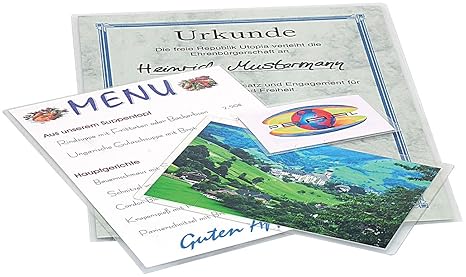 Dokumente und Fotos werden stilvoll und professionell präsentiert. Die Selbstlaminierende Karten schützen Ihre wertvollen Dokumente langfristig vor Staub, Schmutz, Flecken und Feuchtigkeit und sorgen dafür, dass sie nicht ausbleichen. Kein Laminiergerät nötig. DIN A4: Ausmaße: 225 x 312 mm SEHR PRAKTISCH: Energie sparen, Kein Platzraubendes Laminiergerät SICHER: Schützt Ihre wichtigen Dokumente, Plakate, Fotos oder Kinderzeichnungen MADE IN DÄNEMARK: Hochwertige Herstellung im eigenen Werk in Dänemark › Weitere Produktdetails