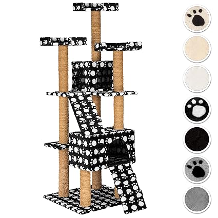 - Vielseitig: Mit Leiter, 2 verschieden großen Katzenhöhlen, mehreren mit Sisal-Seil umwickelten Pfosten zum Klettern und für die Krallenpflege; Zwei Spielbälle und diverse Plattformen ermöglichen Ihrer Katze einen guten Überblick. Ihre Katze findet hier sicher alles, was sie braucht.