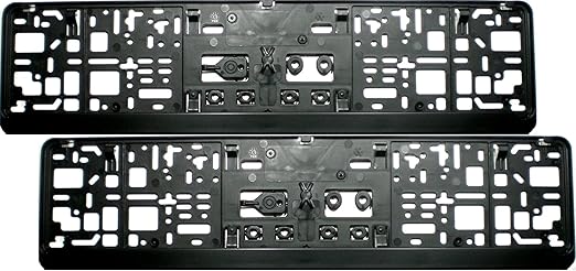 PREMIUM QUALITÄT - Die Kennzeichenhalter sind zu 100 % aus hochwertigem PVC hergestellt. Mit diesen Nummerschildhaltern „Made in Germany“ erwerben Sie einen zeitlosen, werbefreien und dezenten Halter in schlichtem Schwarz für Ihr Auto. LANGLEBIGKEIT - Mit der Nummerschildhalterung haben Sie endlich ein hochqualitatives, stabiles und langlebiges Produkt was auch der UV-Einstrahlung und sämtlichen Witterungseinflüssen stand hält. Zudem ist der Halter Waschstraßenfest. EINFACHE ANBRINGUNG - Die Kennzeichenhalterung zeichnet sich durch ihr robustes Verschlusssystem mit der Einsteck - Klickleiste und das perfekte Handling aus. Die Halterungen lassen sich im Handumdrehen am Auto montieren und bieten Ihren Kennzeichen sicheren Halt. Auch ein Wechsel der Schilder ist Dank dem Klick – Verschlusssystems schnell vollzogen. UNIVERSAL PASSEND- Die Kennzeichenhalter passen für alle Deutschen und EU KFZ-Kennzeichen mit einer Breite von 520 mm. Einen Montageanleitung zur einfachen Anbringung, erhalten Sie zu den Nummerschild Halterungen dazu. Die Nummerntafeln passen nicht für Österreichische Kennzeichen. PASSENDES LOCHBILD - durch das individuell vorgefertigte Lochbild sind diese Halterungen für alle gängigen Fahrzeugmarken und Fahrzeugtypen passend. Dadurch ist auch einfache Befestigung der Nummernschilder ohne extra bohren garantiert.