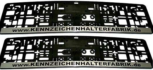 2 Stück EU Standard Kennzeichenhalter schwarz inkl. Wunschbeschriftung (max. 52 Zeichen ).Geeignet für Ihren PKW, Anhänger oder Fahrradträger mit Standard Kennzeichen 52cm x 11cm.Logos und Symbole wie z. Bsp. Telefonsymbol, Herz, Stern, Audi-Ringe, Dreieck sind möglich.Werbeaufdruck: - Im Digitaldruckverfahren, farbecht, UV-beständig, waschanlagenfest und frostsicher , - freie Textwahl ein farbig. LIEFERUMFANG : 2 Kennzeichenhalter bedruckt nach Ihren Vorgaben inkl. Befestigungsset.