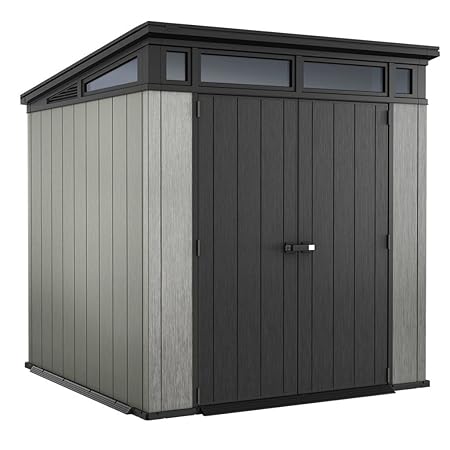 Rauminhalt ca. 8,4 m³ 1 feststehendes Fenster, Doppeltür: auch für große Gartengeräte kann mit Farbe angestrichen werden abschließbar (Schloss nicht im Lieferumfang enthalten) hergestellt aus UV- und wetterbeständigem, hochwertigen Polypropylen (Kunststoff)