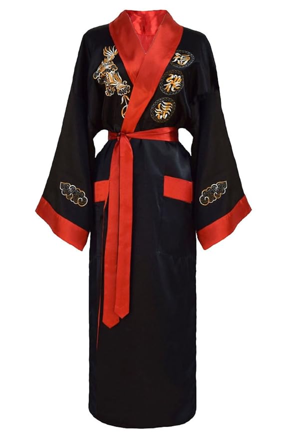 AE Damen langes Kimono Nachtmantel Seidenrobe Morgenmantel, S M L XL 2XL