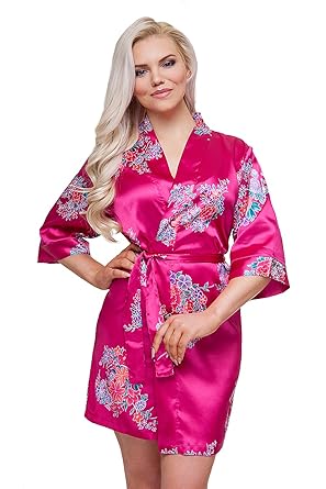 Manufactured to the morning Maltel is made of a pleasant, quality Glanzsatin Kimono cut, Medium Sleeve Long and which should allow the, complete move your arms V-neck, Ärmellange 3/4 sleeves, the knee length tie waist band The satin robes molds very well the body's contours and highlight your benefits The simple yet stylish short kimono robe is perfect for formal clothings