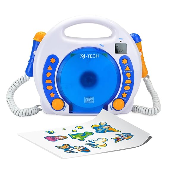 Der Kinder CD Player JamBox von X4-TECH ist für Kinder ab 3 Jahren geeignet. In der Farbe blau ist er das perfekte Geschenk für Kinder. Mit den mitgelieferten zwei Mikrofonen kann Ihr Kind dank Karaokefunktion eine tolle Kinder Karaoke Party mit Ihnen, der besten Freundin oder dem besten Freund feiern. Einfach die Mikrofone einschalten und mitsingen. Die Echo-Funktion verstärkt dabei die Stimme und macht das Kind zum Superstar.