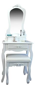 ? Wunderschönes, einzigartiges Design - Dieser wunderschöne Schminktisch mit Hocker und Spiegel wurde speziell für Mädchen entworfen und ist nur bei uns erhältlich. Wir sind stolz auf unser Design und zuversichtlich, dass es jeden Mädchenraum erhellen wird!