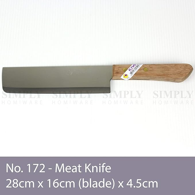 Das Messer welches in fast jeder thailändischen Küche zu finden ist zum Schneiden von Fleisch. Beschreibung Fleischmesser #288: Marke Kiwi 'Made in Thailand' Klingenlänge 20cm - Klingenbreite 4,3cm an der breitesten Stelle - Gesamtlänge 31,5cm extrem scharf geschliffen - Gewicht 110 Gramm Griff aus ungeschliffenem Holz für einen sicheren Halt