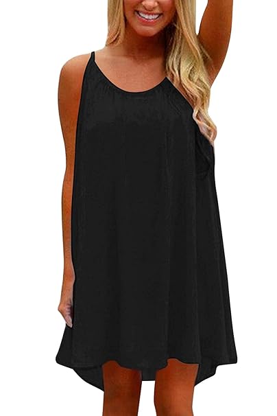 Modellstats:Brust/86cm Taille/61cm Hüfte/86cm Höhe/170cm Model trägt eine Größe S US-Größe: S = US 2/4, M = US 6--L = US 8---XL = US 10 Verstellbare Träger, ärmellos, super weich, dehnbar und leicht, verstellbare Träger, elastischer Bund mit Kordelzug Seitenspaltungen, mittlere Länge, dehnbar, tailliert, unregelmäßiges Kleid, Anlass: Freizeit/Strand/Party/Streetwear Nicht gefüttert, Polyester, U-Ausschnitt, einfarbig, zwei praktische seitliche Teilen, die Sie lieben werden.