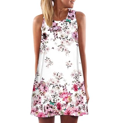 MSBASIC Ärmelloses, verstellbares Riemchensommer Strand Swing Kleid für Damen