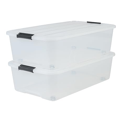 VOR STAUB GESCHÜTZT: Wenn in Ihrem Kleiderschrank kein Platz mehr ist, können Sie in dieser Box Kleidung, Schuhe oder Decken staubgeschützt unter dem Bett aufbewahren. ALLES IM BLICK: Weil der Organizer über ein durchsichtiges Fenster im Deckel verfügt, können Sie seinen Inhalt sofort erkennen. Öffnen und Schließen geschieht durch einen Reißverschluss. PRAKTISCHE SACHE: Die Schuhaufbewahrung ist ziemlich praktisch, weil sie unter das Bett passt. Von dort können Sie die Aufbewahrungsbox an Griffen hervorziehen. WIDERSTANDSFÄHIG: Wir haben die Unterbettkommode aus robustem Polypropylen gefertigt, das einiges aushält und atmungsaktiv ist. Das transparente Fenster ist aus PVC Vinyl. AUSREICHEND PLATZ: In den beiden Fächern der Aufbewahrungsbox mit einer Größe von 91,4 cm x 53,3 cm x 12,7 cm passen viele Kleidungsstücke, Schuhe oder Bettdecken hinein.