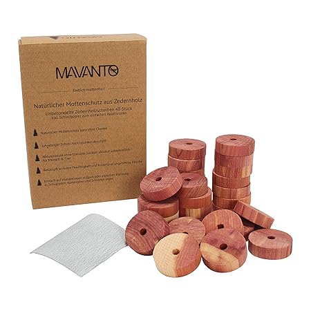 ?Reines Naturprodukt - In unserer nachhaltigen Produktion wird komplett auf chemische Zusätze verzichtet, wodurch unser Produkt im Gegensatz zu herkömmlichen Mottenschutzmitteln unbedenklich für Ihre Gesundheit ist. ?Sofortige Wirkung - Der besonders aromatische Duft unserer Zedernringe überdeckt nicht nur sofort unangenehme Gerüche, sondern vertreibt ebenso effektiv lästige Kleidermotten. Auch sonstige Falter und Insekten werden schützend von deiner Kleidung ferngehalten. ?Natürlicher, wohlriechender Zedernholz-Duft, Zum Aufhängen, Auslegen und Aufstecken auf Kleiderbügel, Lange Wirkung: durch Abschleifen verlängerbar Ideal auch zum Auftragen von Duft-Ölen. ?Wiederverwendet Werden - Kann wiederverwendet werden,um das Aroma zu erneuern und die Schädlingsbekämpfung wiederherzustellen -Das Holz mit Sandpapier leicht abschleifen,um frische Fasern auszusetzen. ?Vielseitig Einsetzbar - Mottenkugeln für Kleiderschrank und Schubladen. Gut im Schuh- und Kleiderschrank, bis zu Aufbewahrungsboxen bleiben.
