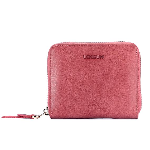 NYCOODNY Damen Elegant Vintage Leder Kleines Portemonnaie mit Reißverschluss und10 Kartenfächer